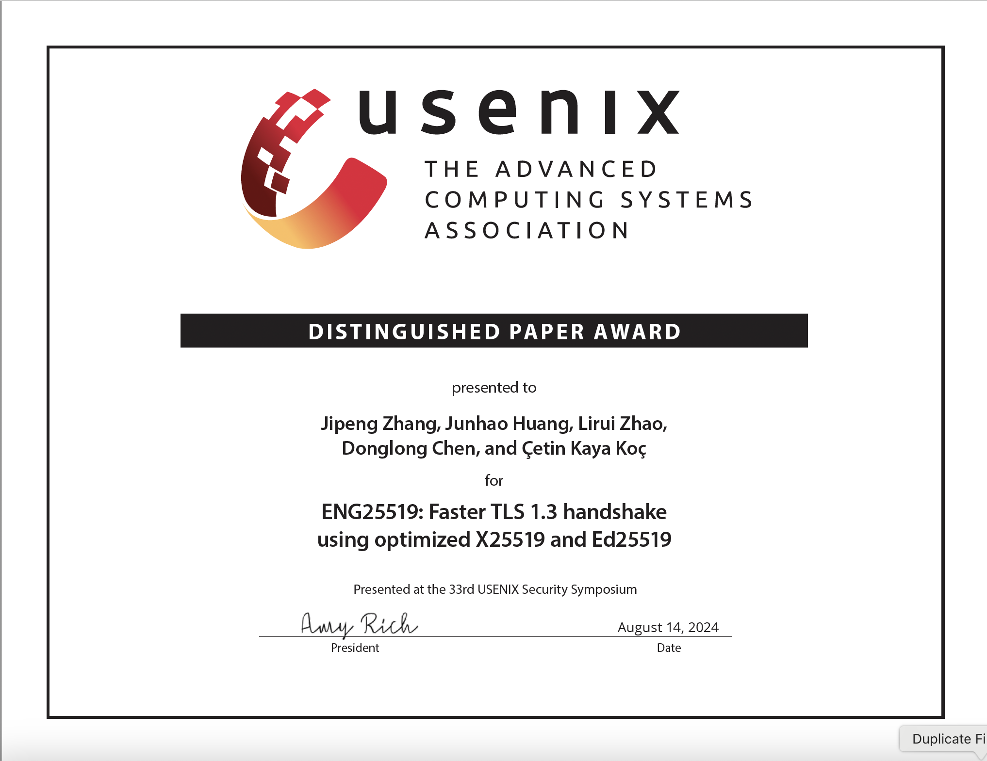 Aug 2024 - The 33rd USENIX Symposium